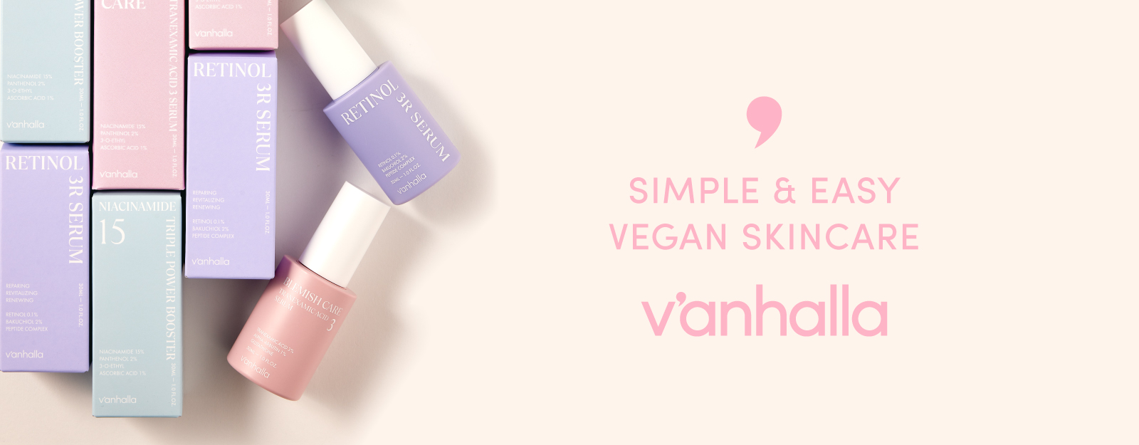 V’anhalla si concentra su attivi essenziali e dosaggi efficaci per ogni esigenza della pelle.